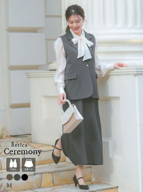 ベスト+フレア膝丈スカートワンカラーセットアップセレモニースーツのカラーバリエーション