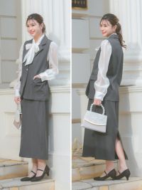 ベスト+フレア膝丈スカートワンカラーセットアップセレモニースーツのイメージ画像2