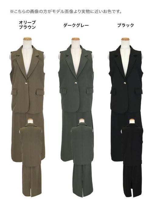 ベスト+フレア膝丈スカートワンカラーセットアップセレモニースーツの商品詳細1