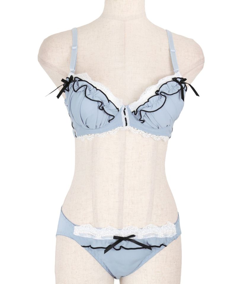 3. レースフリルブラジャー&ショーツセット★(ライトブルー)(A~D,65~75)