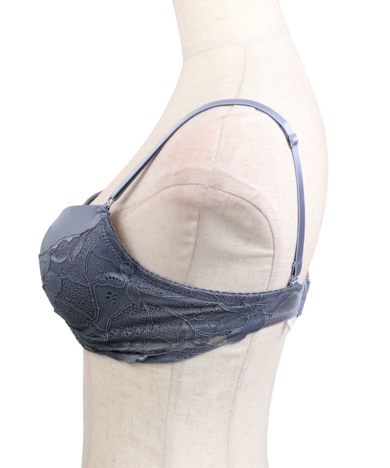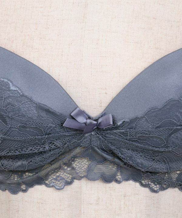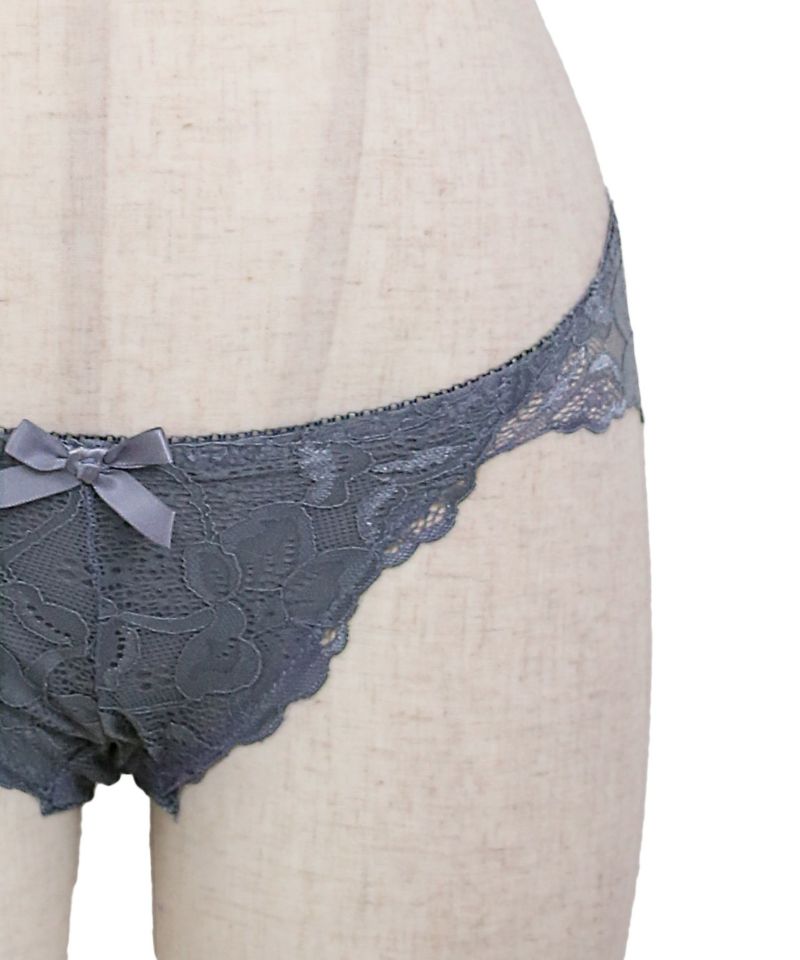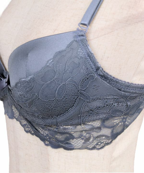 4. レースリボンブラジャー&ショーツセット★(グレー/ブラック)(B~D,65~75)