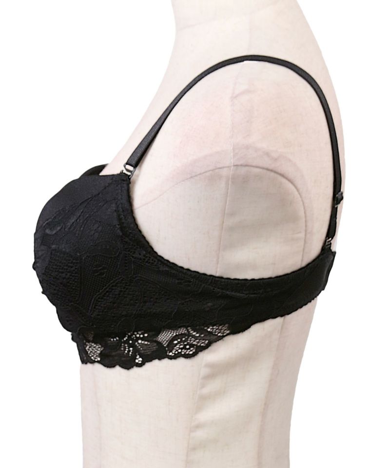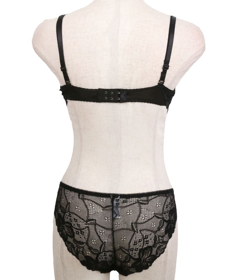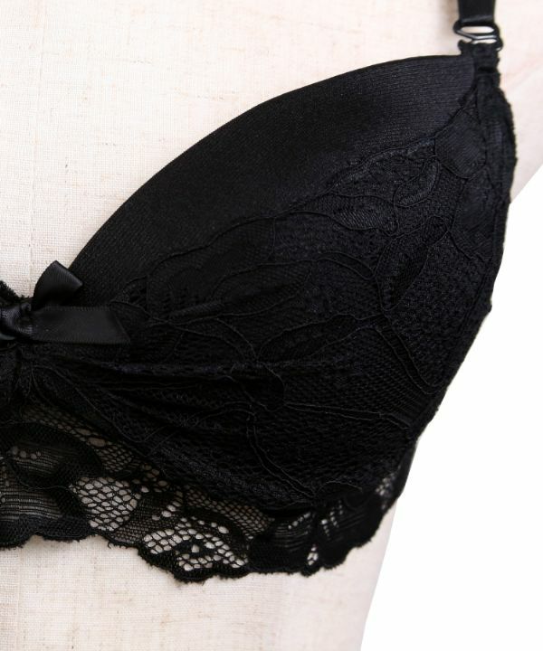 3. レースリボンブラジャー&ショーツセット★(グレー/ブラック)(B~D,65~75)