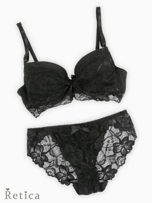 3. バストアップレイヤードレースカップブラジャー&ショーツセット★(ブラック)(B~H,65~90)