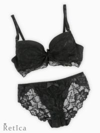 4. バストアップレイヤードレースカップブラジャー&ショーツセット★(ブラック)(B~H,65~90)