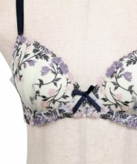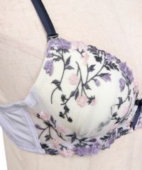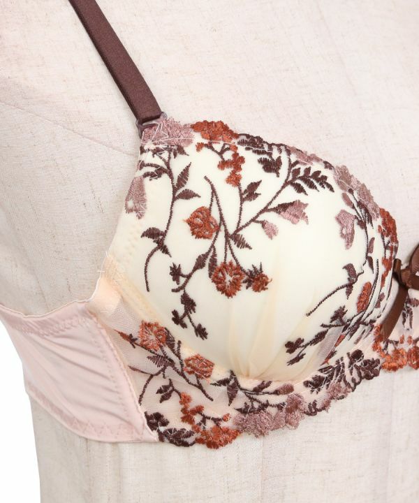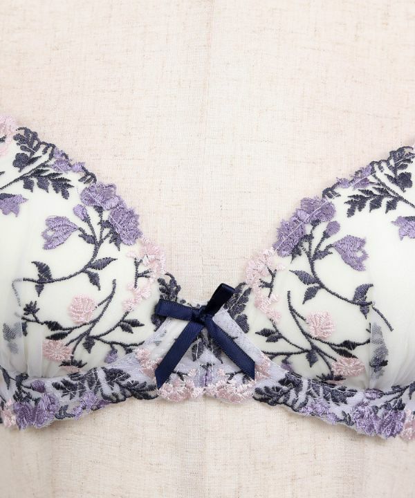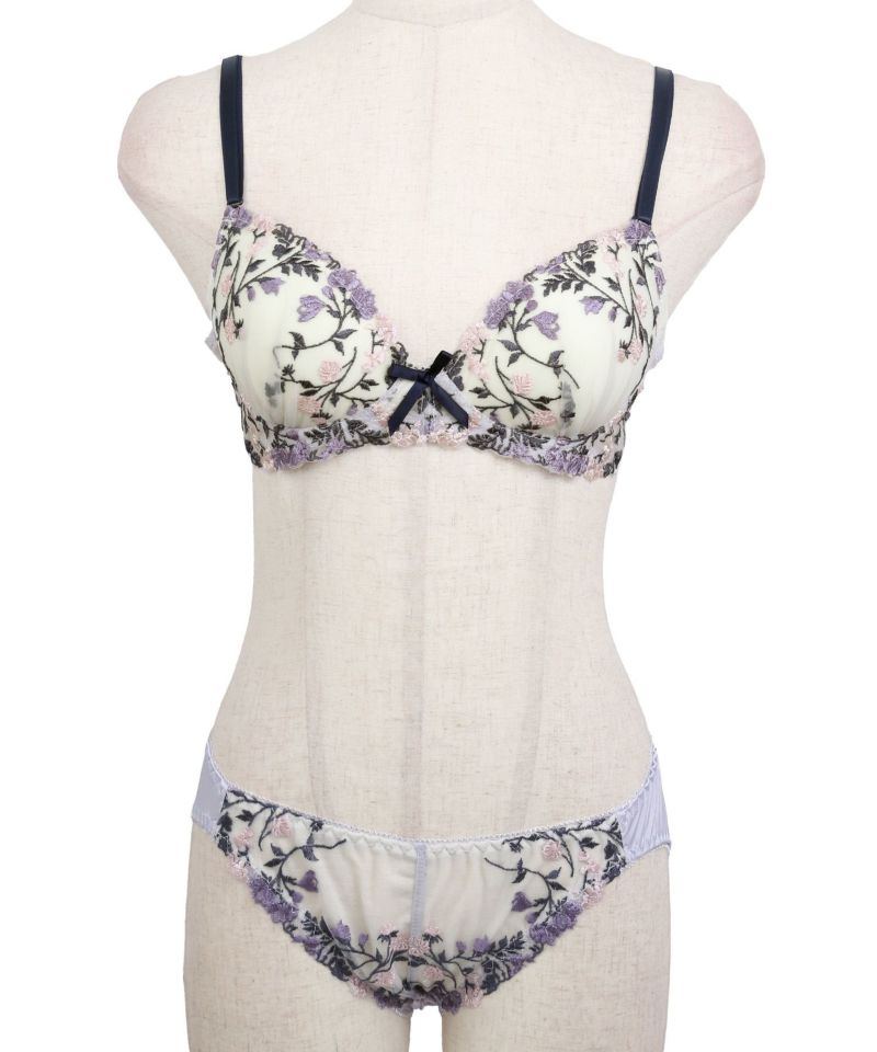小花柄刺繍シフォンノンワイヤーブラジャー&ショーツセットのディティール画像1