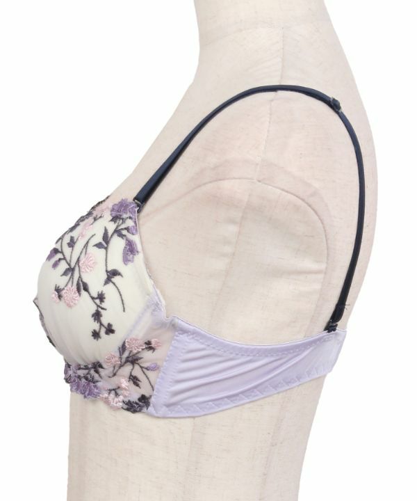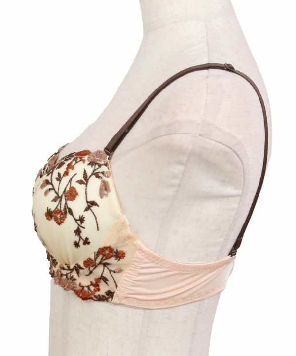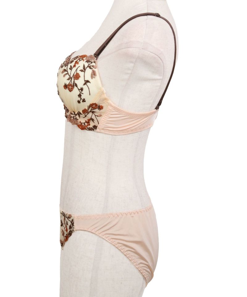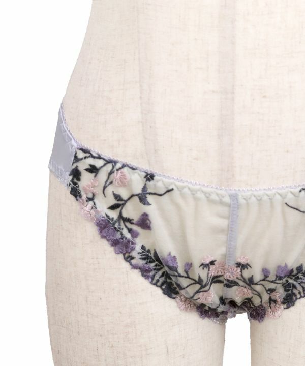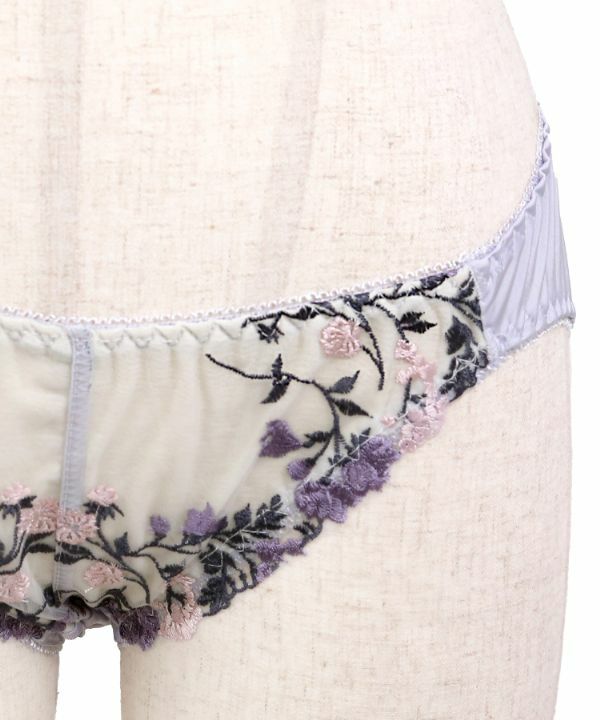 小花柄刺繍シフォンノンワイヤーブラジャー&ショーツセットのサイド画像