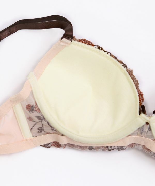 小花柄刺繍シフォンノンワイヤーブラジャー&ショーツセットのディティール画像6