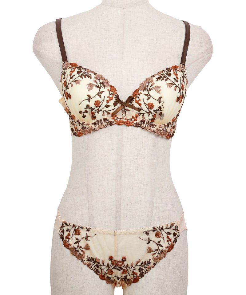 小花柄刺繍シフォンノンワイヤーブラジャー&ショーツセットのスペック表