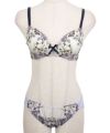 小花柄刺繍シフォンノンワイヤーブラジャー&ショーツセットのフロント画像