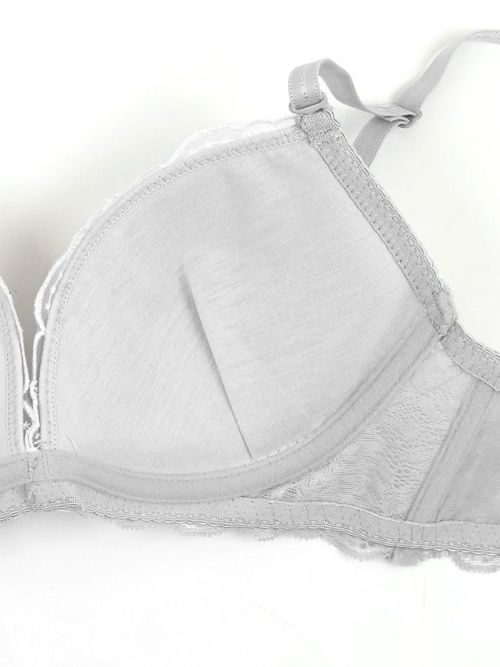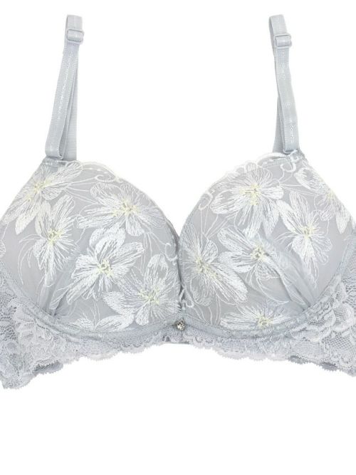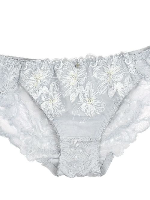 3. ホワイトリリー刺繍レースブラジャー&ショーツセット(ブルーグレー)(A~D/70~75)