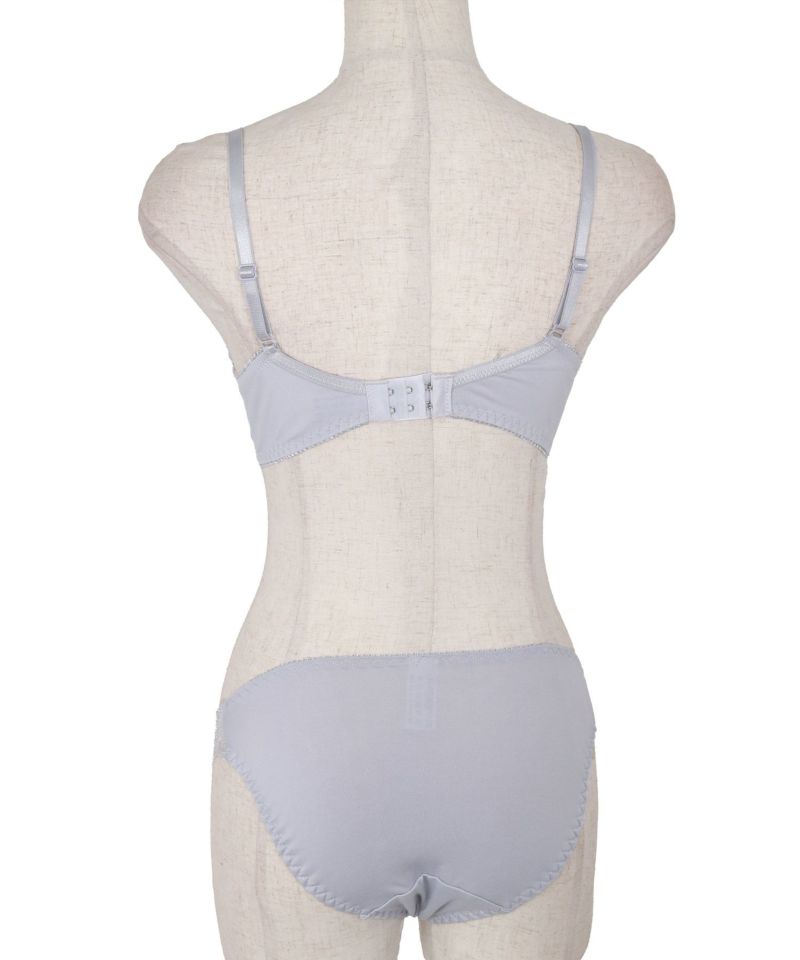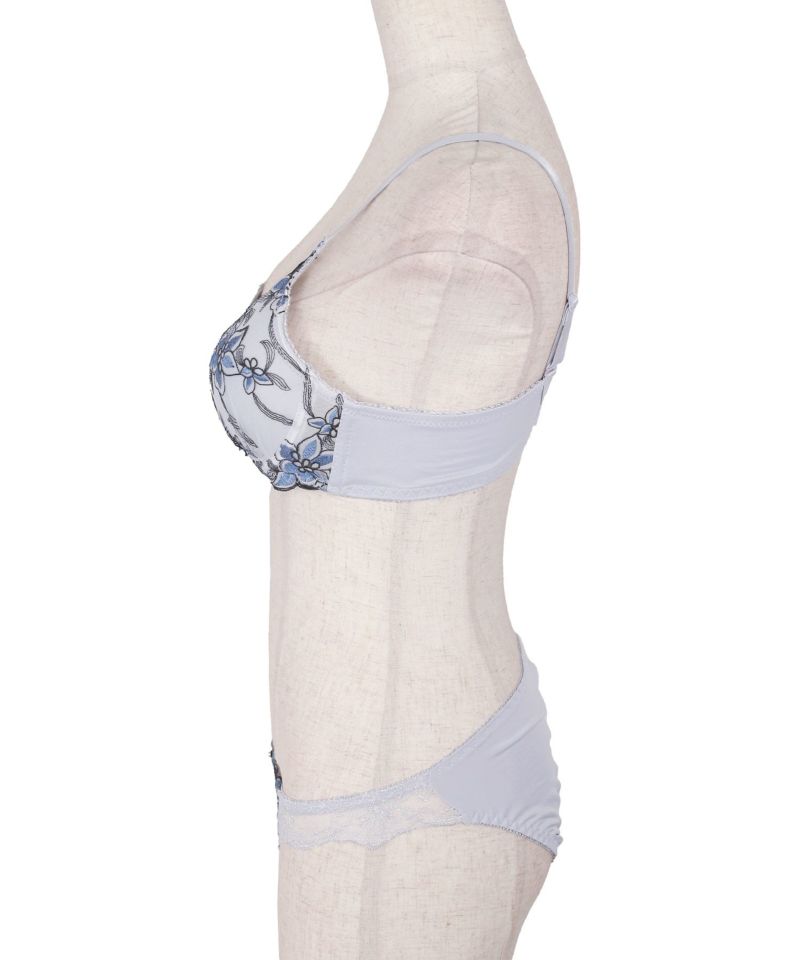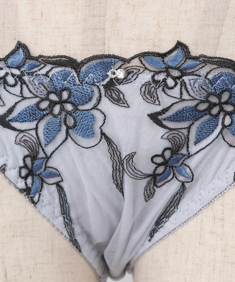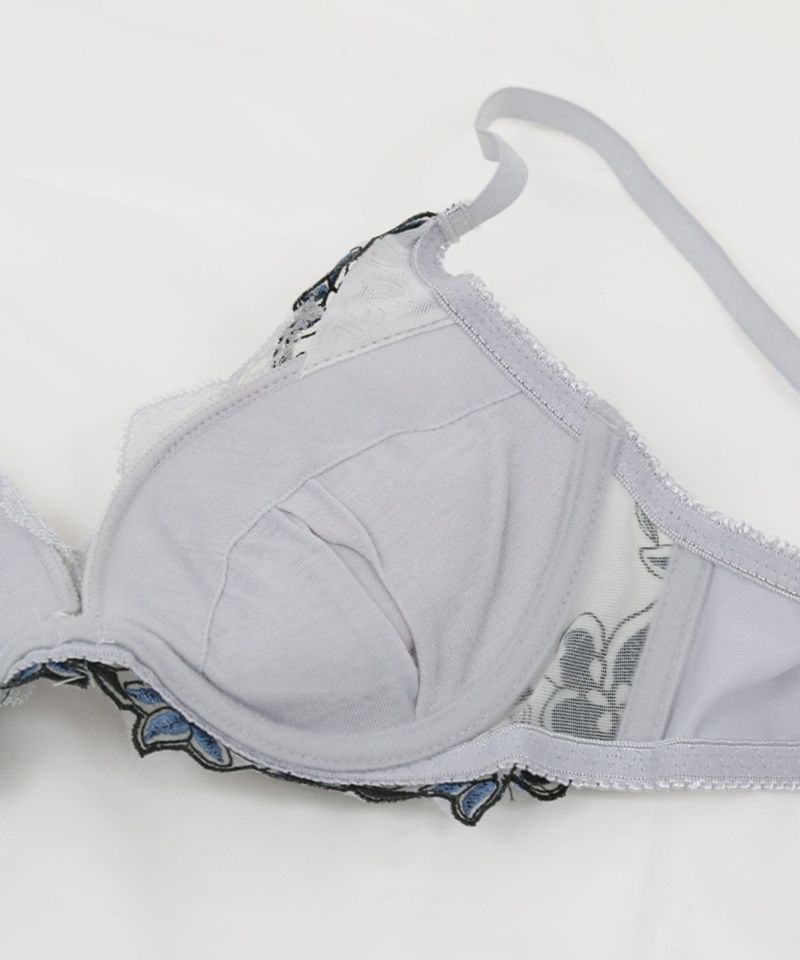 3. クラシカルシフォンフラワー刺繍ブラジャー&ショーツセット★(グレー)(B~D,65~75)