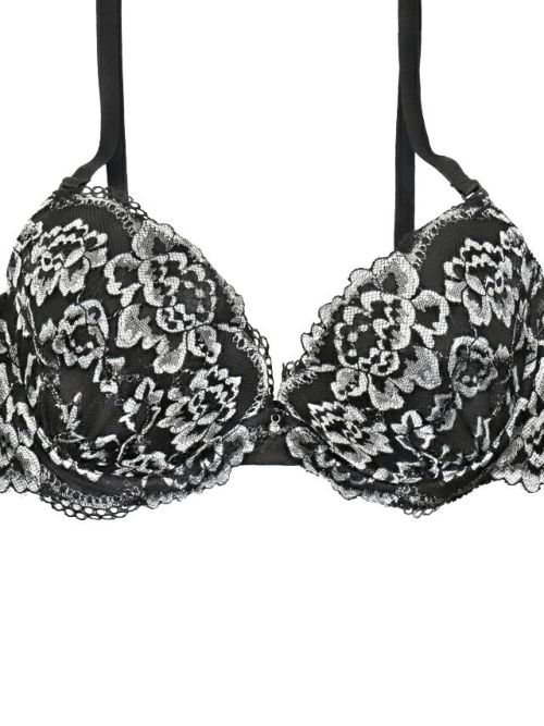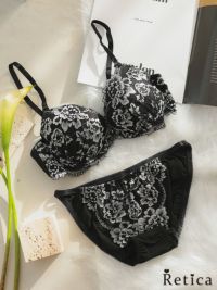 3. フラワー刺繍エレガントブラジャー&ショーツセット(ブラック)(A~F/70~75)