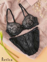 3. ヌーディブラックレースブラジャー&ショーツセット(ブラック)(A~F/70~75)
