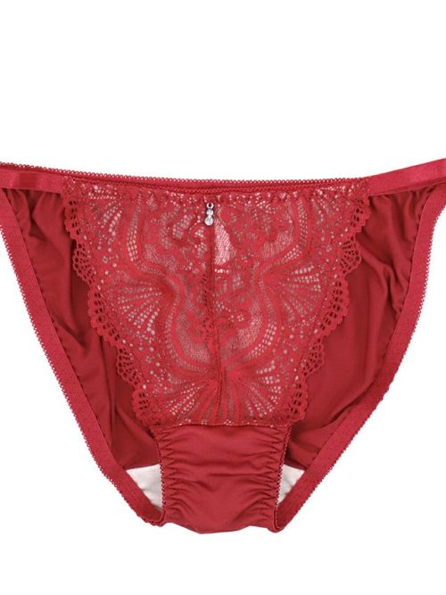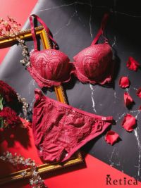 3. スカラップレースコードデザインブラジャー&ショーツセット(レッド)(A~F/65~80)