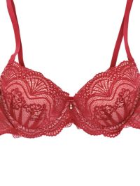 4. スカラップレースコードデザインブラジャー&ショーツセット(レッド)(A~F/65~80)