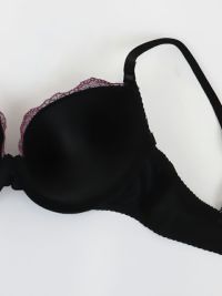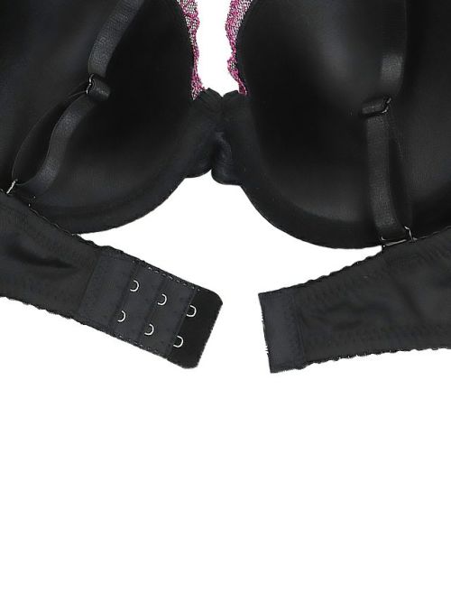 3. フラワーリーフ刺繍レースブラジャー&ショーツセット(ブラック×ピンク)(A~F/65~80)