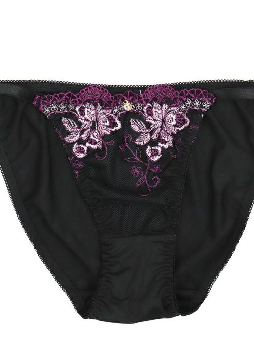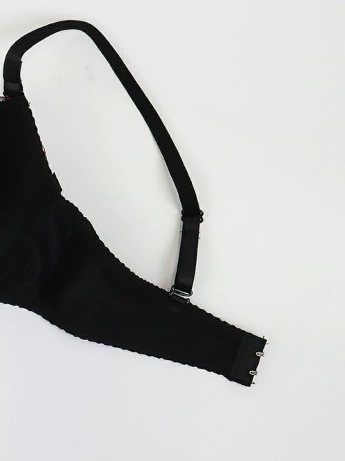 4. フラワーリーフ刺繍レースブラジャー&ショーツセット(ブラック×ピンク)(A~F/65~80)