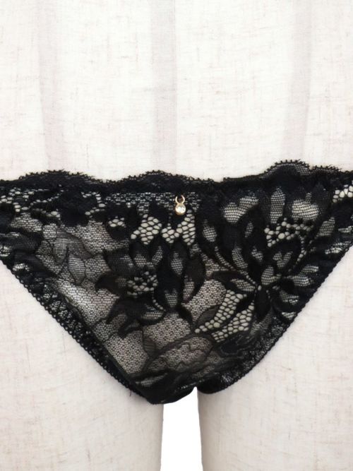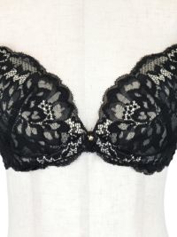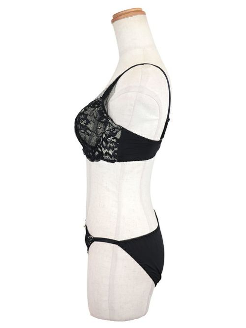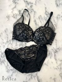 4. エレガントフラワーレースチュールベールカップブラジャー&ショーツセット(ブラック)(A~F/65~80)