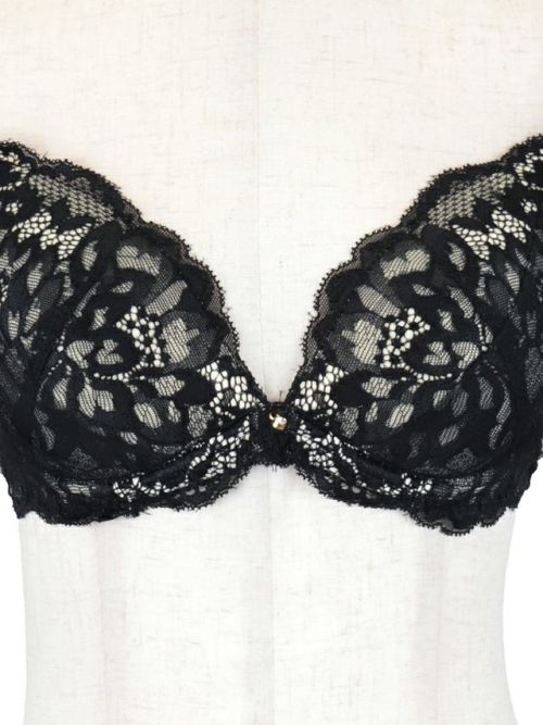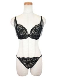 3. エレガントフラワーレースチュールベールカップブラジャー&ショーツセット(ブラック)(A~F/65~80)