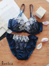 フラワー刺繍レースネイビーランジェリーセットのディティール画像1