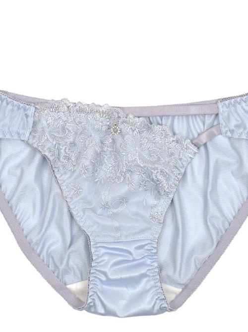 爽やかな清楚ランジェリー♪ フラワーレースシルバー刺繍カットアウトコードブラジャー&ショーツセット(サックス)(A~F/65~80)
