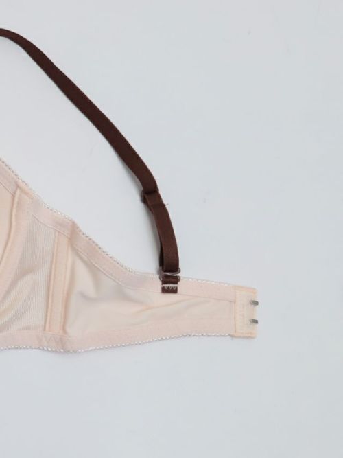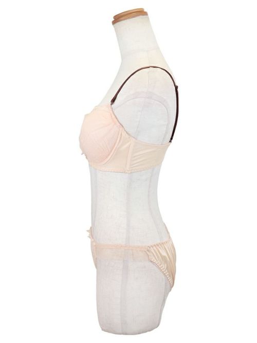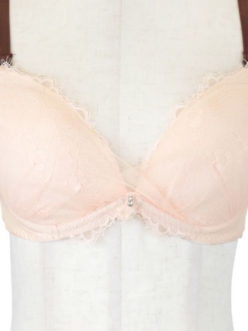 4. レイヤードレースチュールコードデザインフリルブラジャー&ショーツセット(ピンクベージュ)(A~F/65~80)
