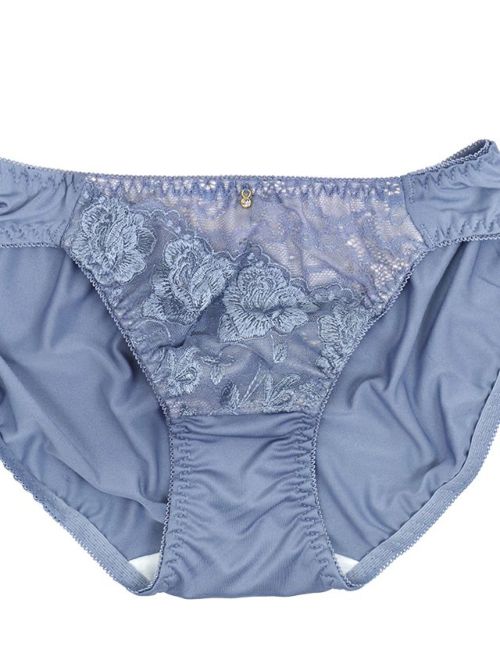 3. ゴールドビジューフラワーレース脇高ブラジャー&ショーツセット(ブルーグレー)(A~F/65~80)