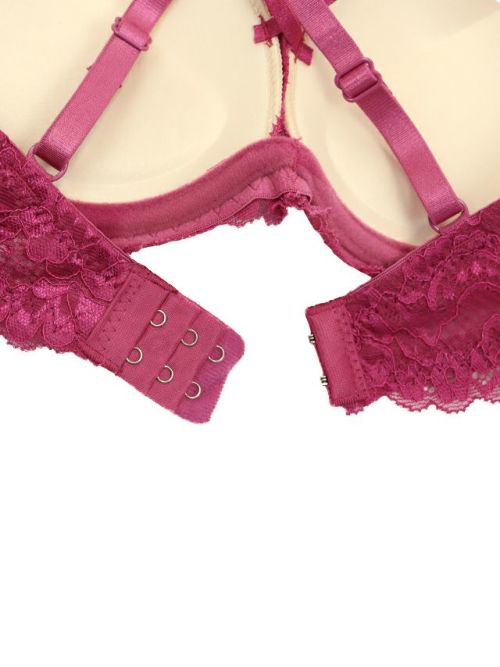 3. クロスデザインフラワーレースビジューブラジャー&ショーツセット(マゼンタピンク)(A~F/65~80)