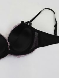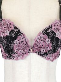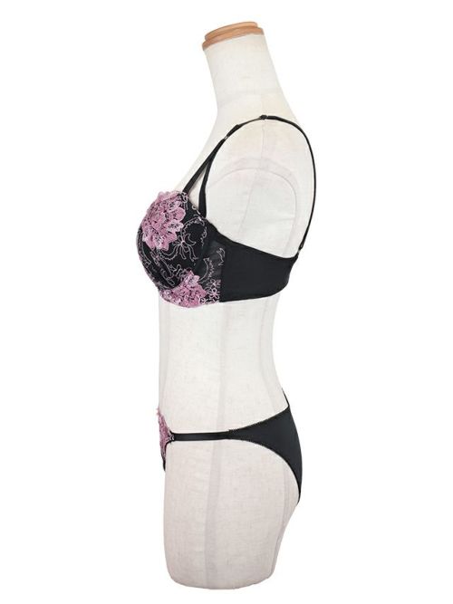 3. エレガントフラワー刺繍ビジュー付き脇高ブラジャー&ショーツセット(ブラック)(A~F /65~80))