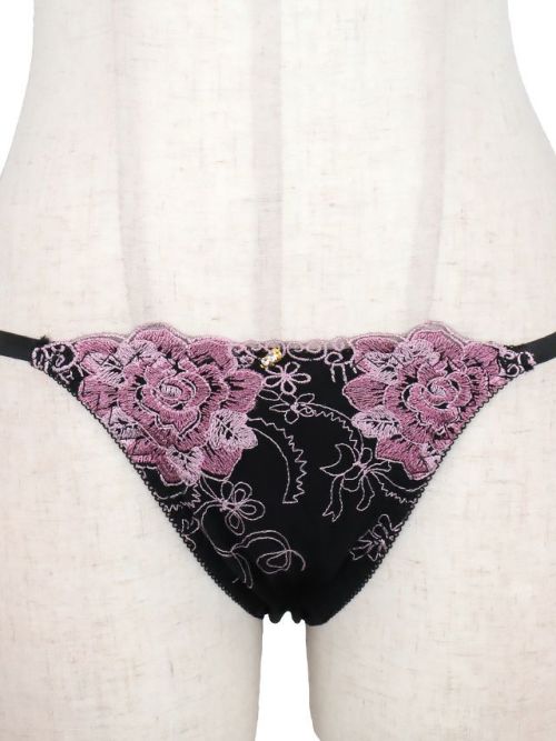 エレガントフラワー刺繍ビジュー付き脇高ブラジャー&ショーツのサイド画像