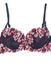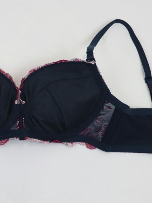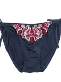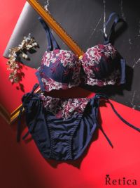 大胆な華やかな刺繍が美しい♪ エレガント大胆ローズ刺繍脇高ブラジャー&ショーツセット(ネイビー)(A~F /70~75)