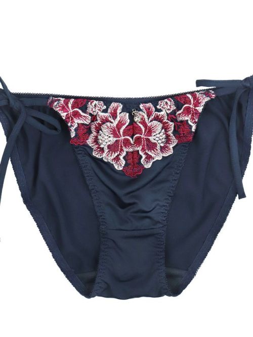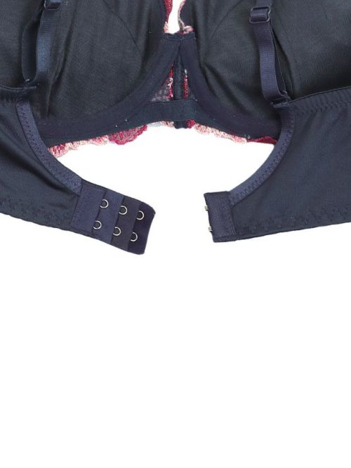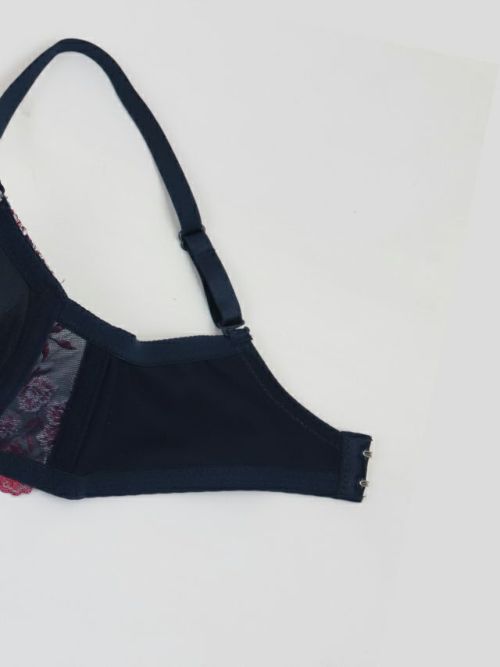 3. エレガント大胆ローズ刺繍脇高ブラジャー&ショーツセット(ネイビー)(A~F /70~75)
