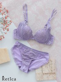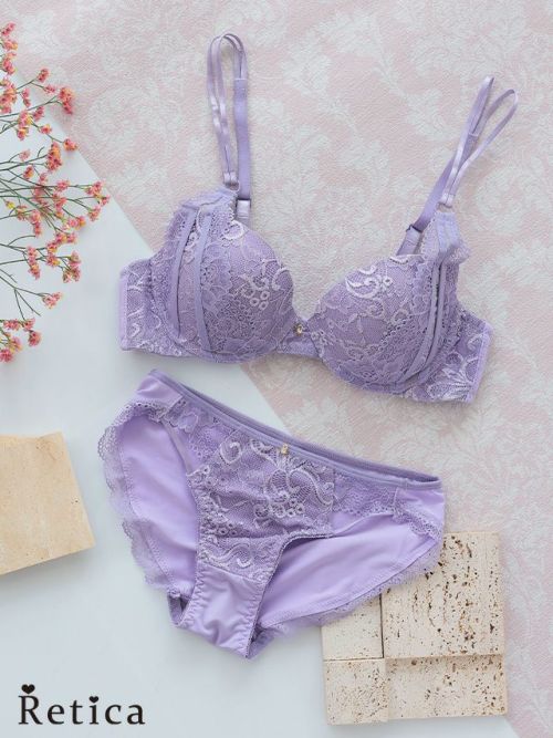 落ち着いた品のある1着♪ エレガントレースビジュー付き脇高フルカップブラジャー&ショーツセット★(ラベンダー)(A~F/65~80)