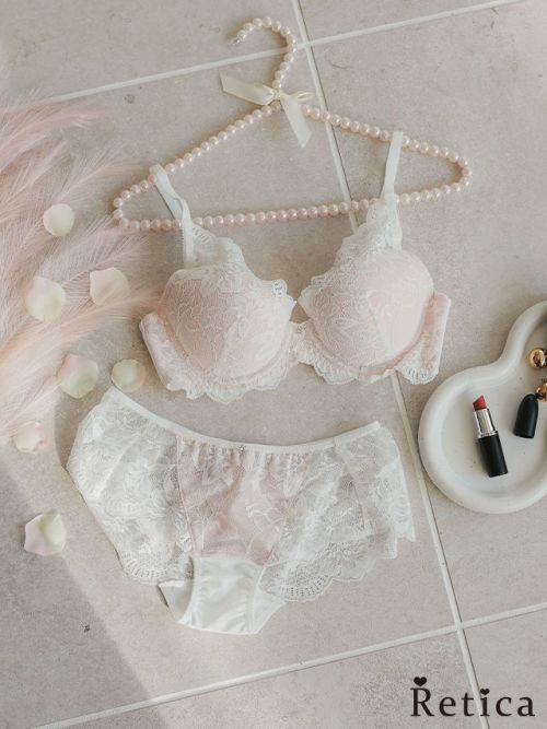 4. [SALE] ヌーディーオールスカラップレースカップブラジャー&ショーツセット★(ホワイト)(B~F,65~80)