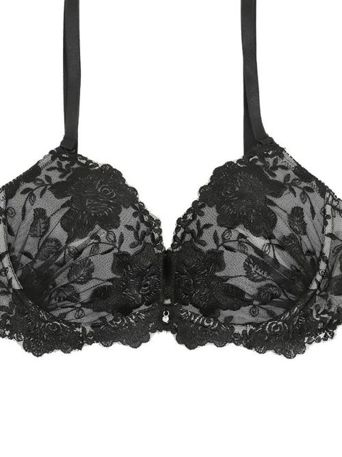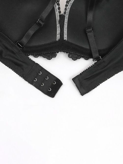 3. シアーチュールフラワー刺繍カップブラジャー&ショーツセット(グレー)(A~G/65~80)