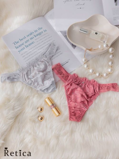 3. フラワーレースTバックショーツ単品★(ピンク/グレー)(Mサイズ〜Lサイズ)