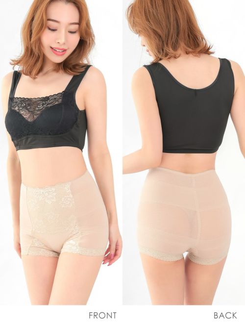 シンプルレースデザインショーツモカのフロントバック画像1