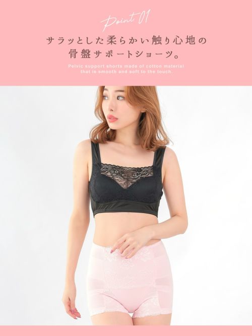 シンプルレースデザインショーツピンクの画像フロントバック