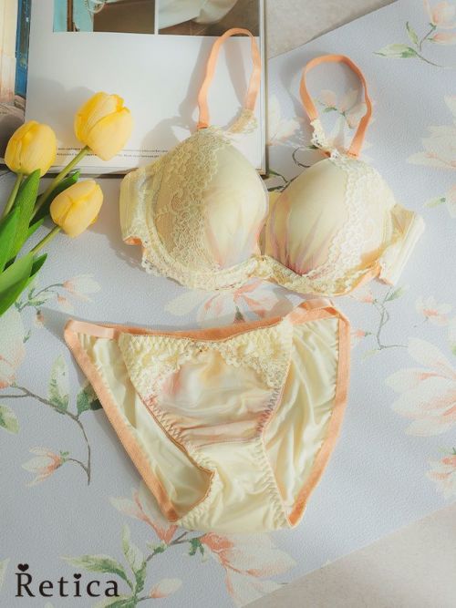3. グラデシアーレイヤードチュールカップブラジャー&ショーツセット(イエロー)(A~F,65~80)