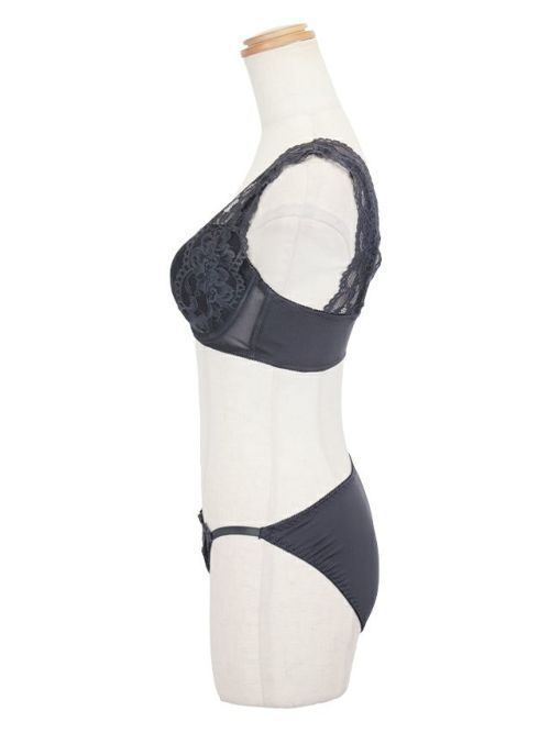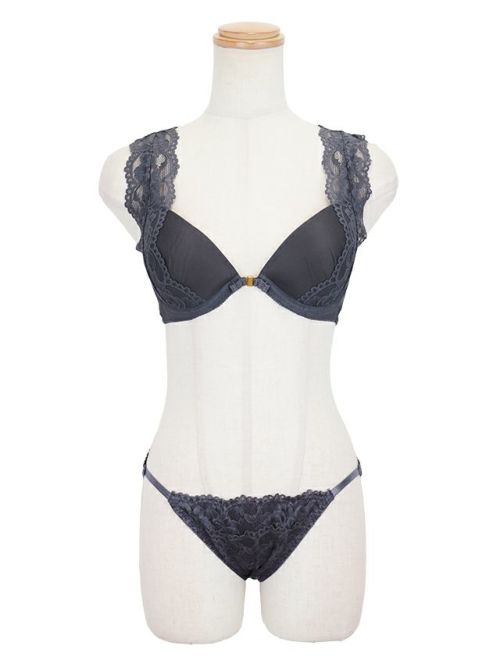3. ストラップレースフロントホック脇高カップブラジャー&ショーツセット(チャコールグレー)(A~F,65~80)