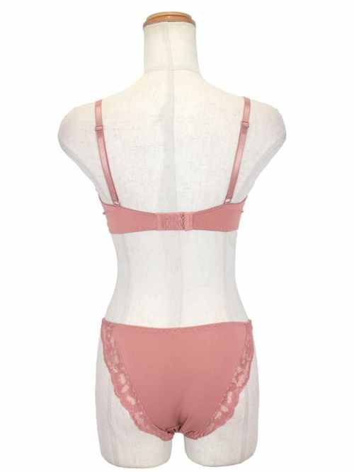 3. ワンカラービジューチャーム付きエレガントフラワーレースレイヤードカップブラジャー&ショーツセット(ダスティピンク)(A~F/65~80)