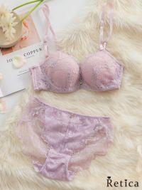 3. ゴールドビジュー付きスカラップレースブラジャー&ショーツセット(ラベンダー)(A~F/65~80)