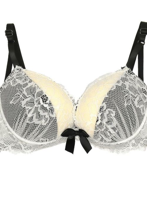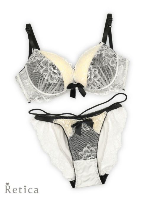 甘辛キュートな小悪魔ランジェリー♪ エンブロイダリーリボンモノトーンカップブラジャー&ショーツセット(ホワイト)(A~F/65~80)