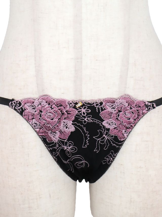 大きなお花の刺繍が華やか♪ ローズ型チャーム付きエレガント花柄刺繍脇高ブラジャー&ショーツセット★(グレープ)(A~F/65~80)