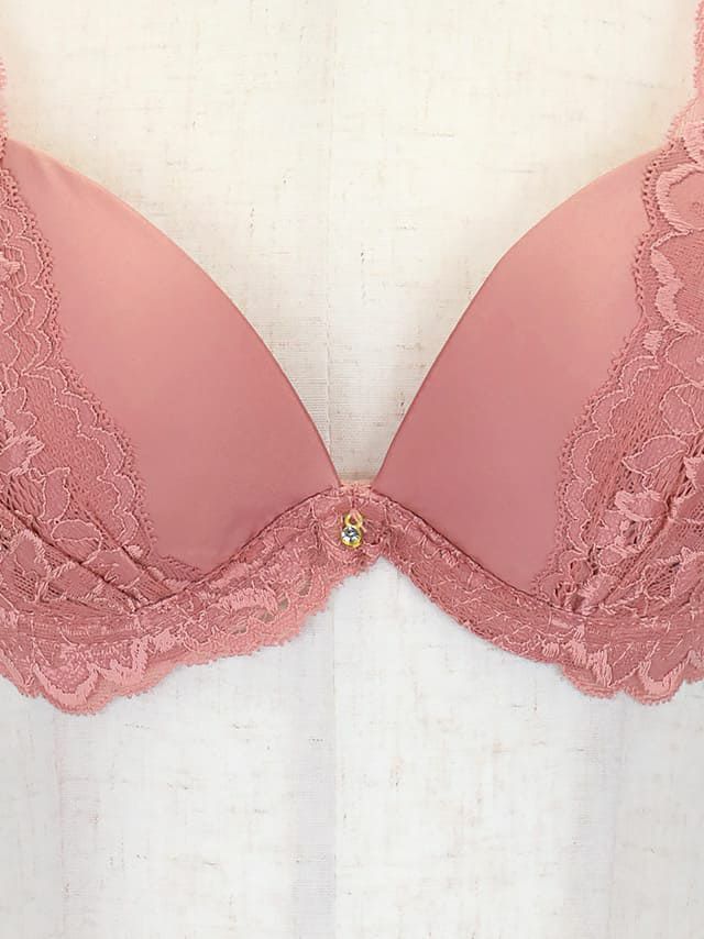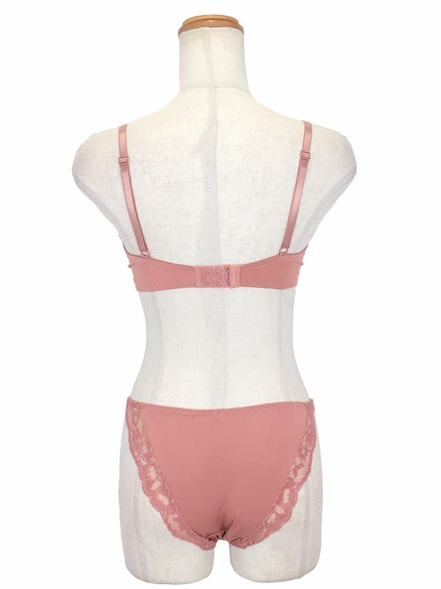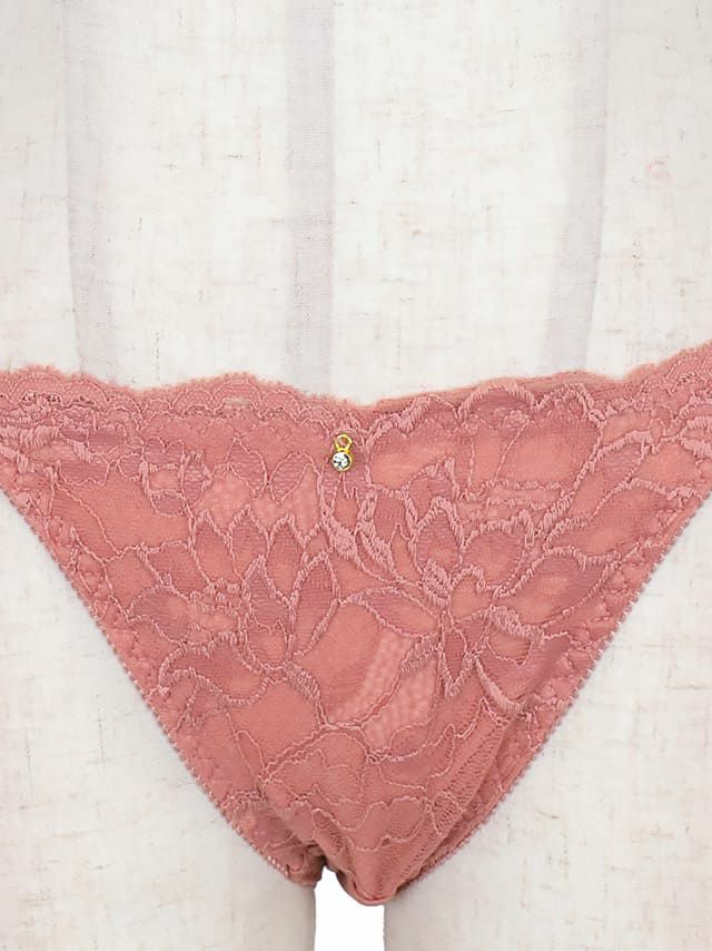 優しいピンクランジェリー♡ ワンカラービジューチャーム付きエレガントフラワーレースレイヤードカップブラジャー&ショーツセット(ダスティピンク)(A~F/65~80)