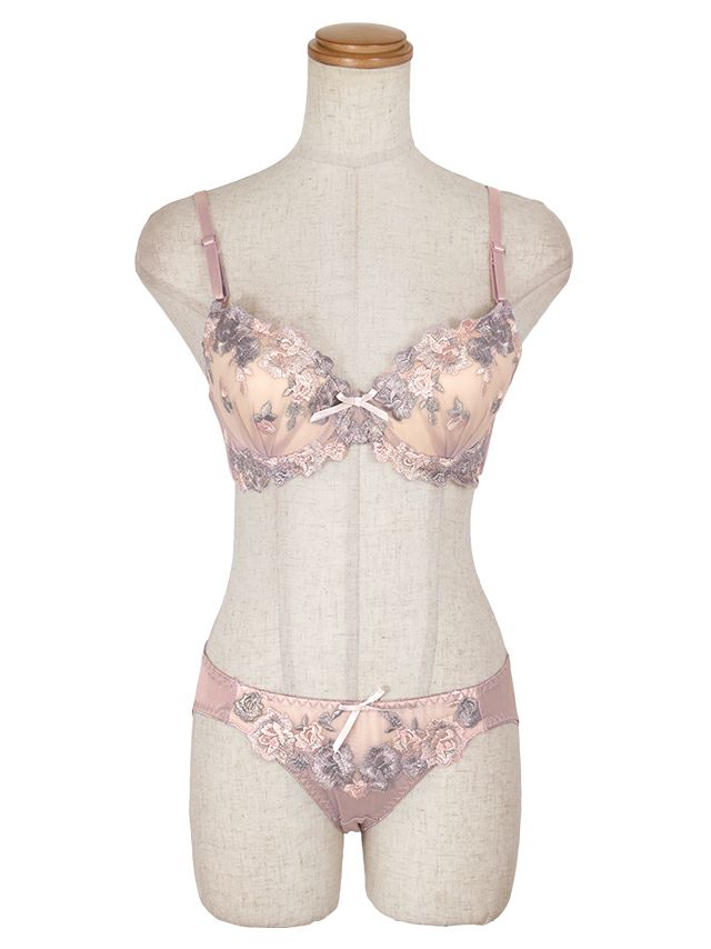 気分を上げたい日に♪ ニュアンスローズ刺繍リボンカップブラジャー&ショーツセット★(ストロベリー)(A~D/65~75)