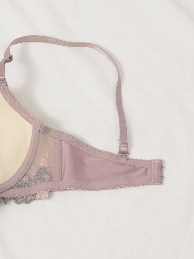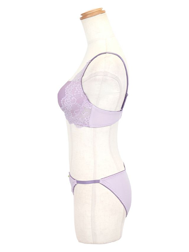 落ち着いた品のある1着♪ エレガントレースビジュー付き脇高フルカップブラジャー&ショーツセット★(ラベンダー)(A~F/65~80)