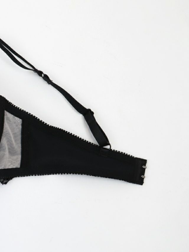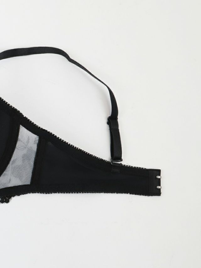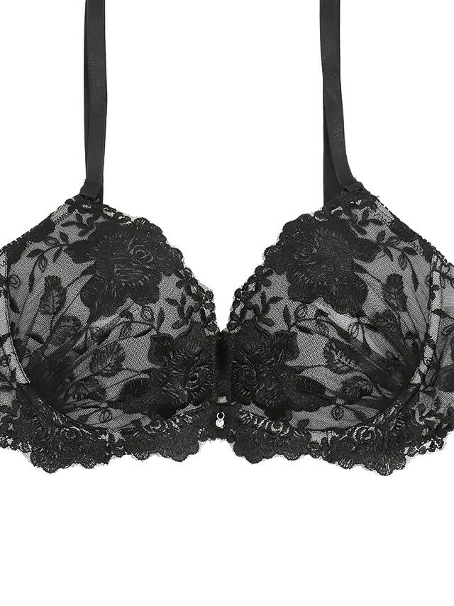 華やかな刺繍がエレガントなランジェリー♪ シアーチュール&フラワーリーフ刺繍ソフトワイヤーブラジャー&ショーツセット★(ブラック)(A~F/65~80)