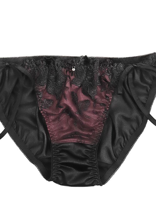 コードとレースの透けが誘惑的♪ フラワーレースTバックショーツ単品★(ワインレッド/ブラック)(Mサイズ〜Lサイズ)
