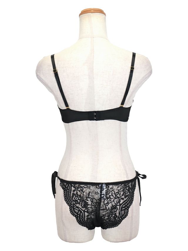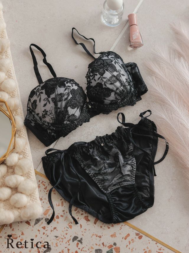 レースで魅せる大人のエレガンス エンブロイダリーレース脇高カップブラジャー&ショーツセット(ブラック)(A~F/65~80)
